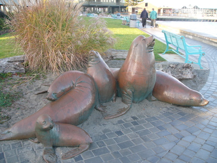 My home town sponsors a huge Arts fest every year, raising hundreds of thousands of dollars, which they donate to different charities. Each year, in addition, they donate a piece of art to the community. I love this place. This is what I saw on the BeachWalk, about two miles of public path along the beachfront, punctuated with public art.