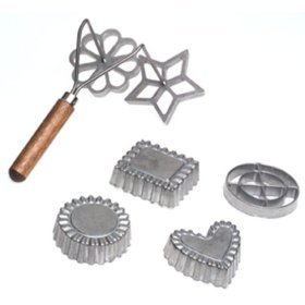 The cookie press and the rosette iron are both from Amazon.com, only because I couldn’t get any other photos to print. There are other sources – cooking.com, maid of scandinavia, etc. These are tools worth the small investment – you use them year after year.