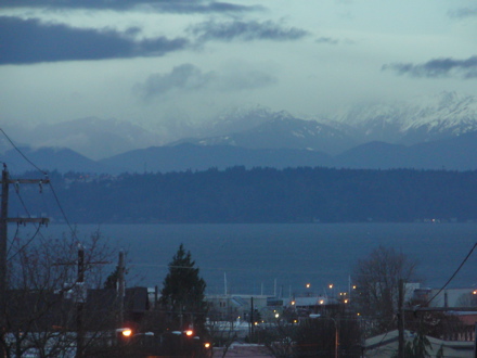 You can see the Olympic mountains in the distance, with a fresh coating of snow. Can you feel how cold it is?
