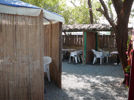 These are the cabins in the family section, open so you can keep an eye on the kids. There is another section of cabins that are more circular, more private, if you don’t have children with you.