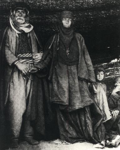 I love this photo. The woman has a plain version of the headdress, and is wearing a double dress . . . and her husband is holding her hand!