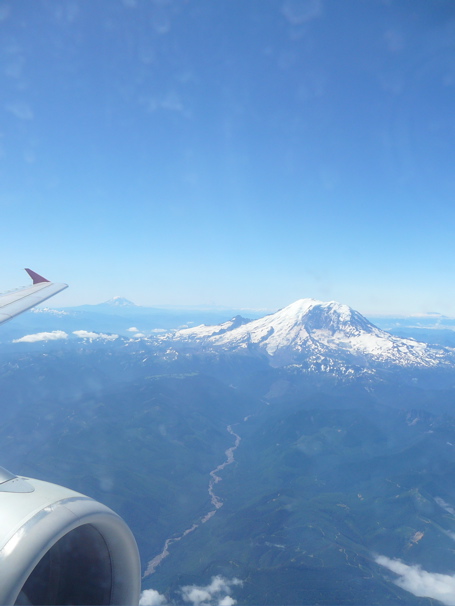 Every now and then flying into Seattle you can see a whole line of mountains, from Mt. Rainier to Mt. Hood, the remains of Mt. St. Helens, Mt. Adams and sometimes, way off in the distance, Mt. Shasta.