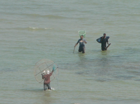 The fishermen brought in a lot of fish, just fishing near the shore. Later, at low tide, they also gathered shell fish. I would love to smell and taste the feast they had after sundown!