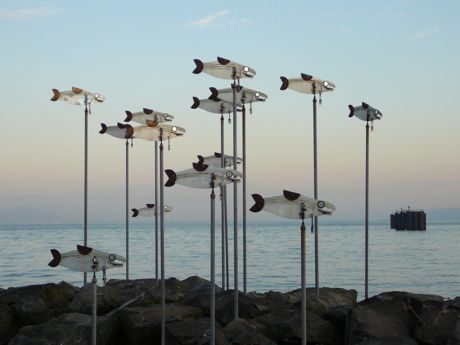 You know how I love public art. These fish are amazing with the early morning light on them:
