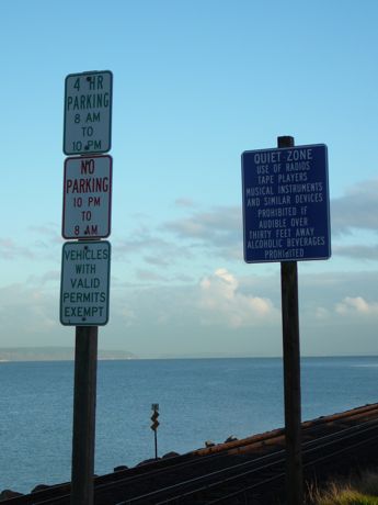I love signs. The very first sign I remember photographing was in Kenya, where it said “Elephants have the right of way.” This is a couple signs we came upon while walking along the waterfront, and it occurred to me that in this very law-abiding community, there were all kinds of signs telling you what you can’t do . . . LOTS of them!