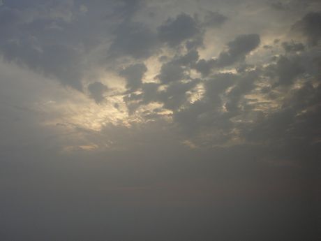 Weather Underground Kuwait tells us today we will see scattered clouds, and that right now we have “mist.” I am seeing a while lot of mist. I am a little shocked, because my balcony was all misted this morning; that doesn’t happen often. But “scattered” clouds? Right now, there is a thick cloud cover, but it may dissipate as the day warms up.