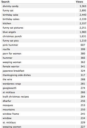 Any time I start to get all puffed up about readers complimenting me on my blog, I just take a look at the search terms that bring them in.