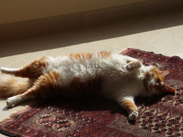 A picture worth a thousand words, hmmm? He is so happy the warm sunny days are back. . . his needs are so few, and he revels in the sweetness of a puddle of warm sunshine.