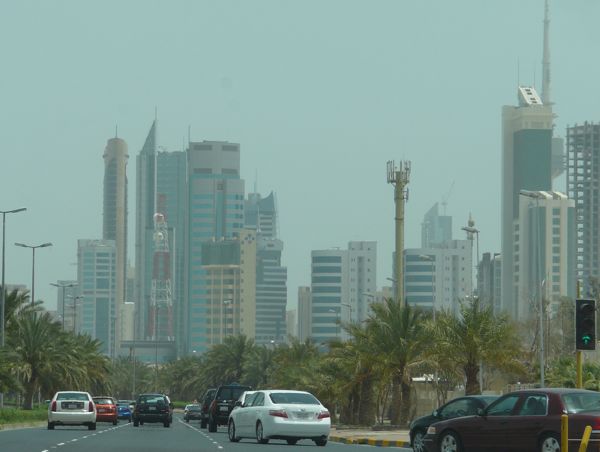 For my friends who think we live in tents and drive our camels to work, a nice shot of downtown Kuwait: