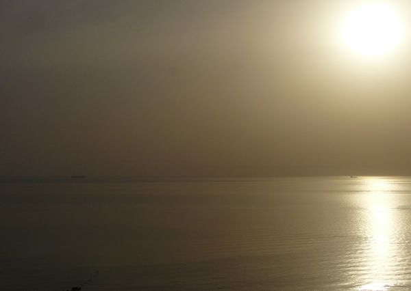The sea is as flat as old glass, a little ripple here and there. You can squint your eyes up and see all the way to Failaka Island, all the big freighters puffing up and down the gulf, the Coast Guard boats heading out to interdict a drug runner or some illegally immigrant, a few little speed boats.