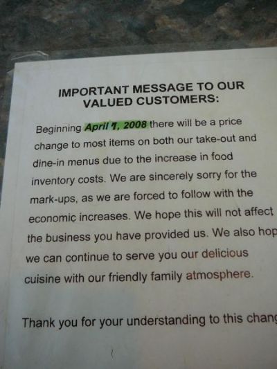 Like Kuwait, increasing food costs have forced prices up everywhere: