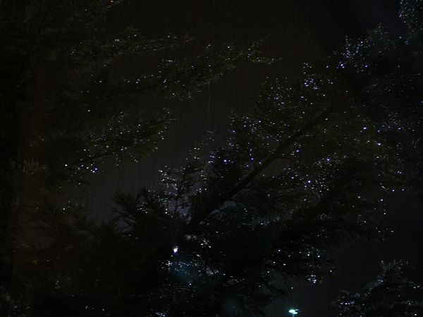I could hear the rain falling heavily when I awoke this morning, and as I looked out, the drops were gleaming heavily on the pine boughs just outside my window. They were so beautiful! Another photo-op: