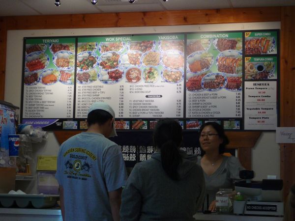 Good guess! It took me 30 minutes to get my dinner (salmon teriyaki) because the place was so full of locals (always a good sign.) Not exactly fast food, but worth the wait.