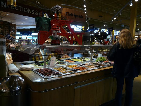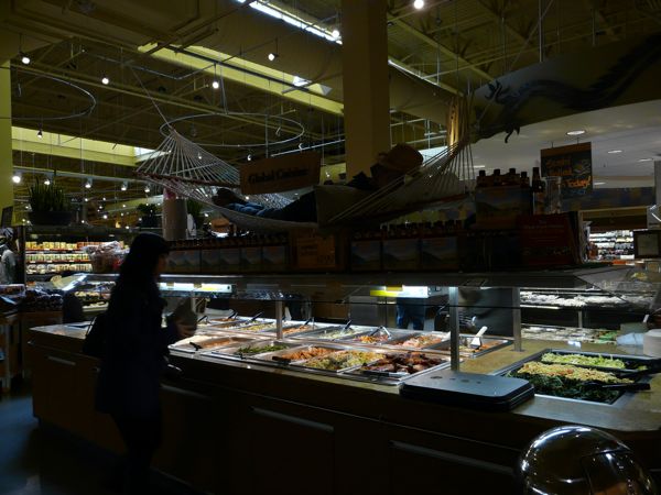 About one third of the very very large store is devoted to take-out food. There are three different large buffet stations, one for global food, one for salad bars, one for main dishes, and then there is a whole separate one for freshly prepared Japanese food. There is another separate area for custom sandwiches, and another area for desserts.