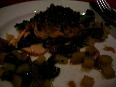 I had a spinach salad with dried cranberries and toasted pecans and roquefort cheese, with a balsamic dressing, and enari sushi.