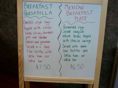 But imagine! These are sauces for the breakfast burritos, and they range from hot to super super hot!