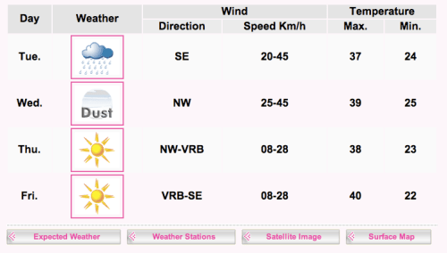 Thunderstorms tomorrow. Dust on Wednesday. You’d think if we have thunderstorms, it would rain, and damp down the dust, wouldn’t it?