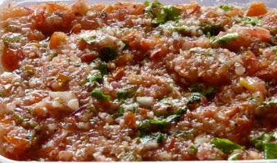 five fresh Kuwaiti tomatoes, and chop them finely,