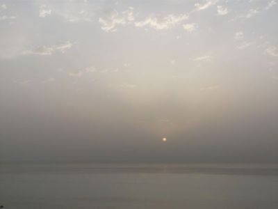 Here, minutes later, we can see the sun over the thick haze on the horizon:
