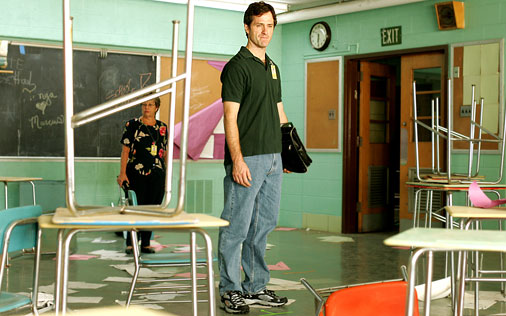 New teacher “Prez” suffers total loss of control over his class on his first day, but slowly finds ways to engage their attention – such as teaching them to use math to figure odds rolling dice. Once they understand the value of the new information, they are enthusiastic learners . . . or at least, they co-operate with the boring stuff because he finds ways to reward them with interesting information, relevant to helping them cope with their lives. The teachers learn from the students – to keep it real, keep it relevant.