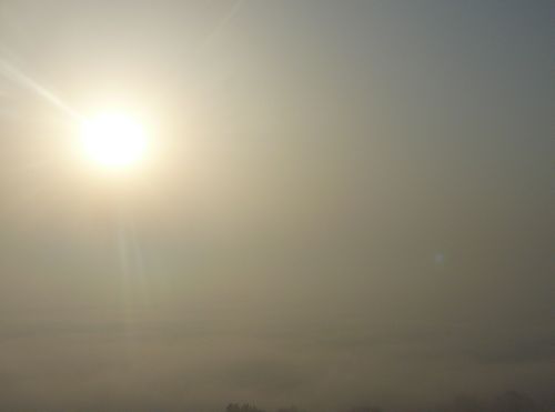 This morning, WOW. It’s as if it were Seattle fog rolling over the water, except it is Kuwait steam – this is what sunrise really looked like – it’s hard to photograph steam when your lens keeps clouding. What looks like waves – you can’t even see the Gulf this morning, that is steam/fog, rising off the waters. The whole area is covered with rolls and wisps of steamy fog.