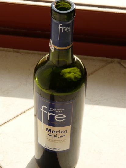As I was wandering through the Co-op (Jamiya) the other day, picking up a few basics, I came across something not-so-basic – a bottle of alcohol-free Merlot.