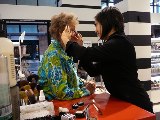 Honestly, I thought he was like a singing telegram, and maybe it was somebody’s birthday, but the gals working in Sephora were sort of brushing him off and his patter was, well, unattractive when not profane. One gal, working on a makeover, was kind but firm, and said good-bye to him and he seemed to take the hint and left. He comes by almost daily, she said.