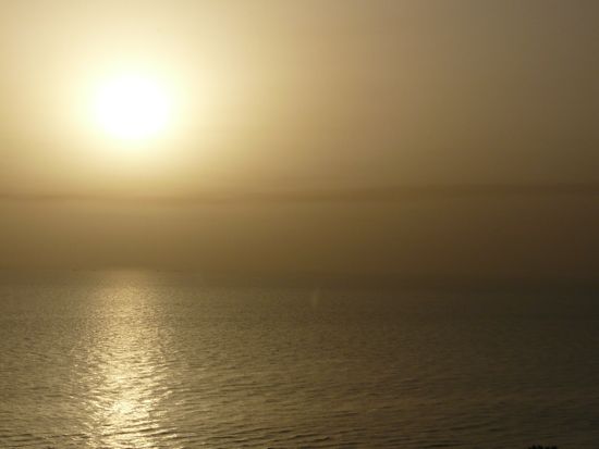 Another sweet, clear morning, a whole blockade of fishing boats between me and the horizon, and a totally different sunrise from yesterday – a very yellow, sulphury sunrise: