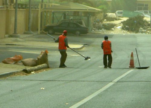 We finally figured it out – it is sand, sand and grit removed from the streets AND, more importantly, from the drains, so that when it rains, the drains will be clear and the water from the (Insh’allah) heavy rainfall will have a way to run back to the sea without puddling in lower areas, as it did several years ago when a couple people actually drowned in Kuwait.