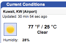 One of my favorite places, Weather Underground: Kuwait tells us we have five more days below 100°F coming up and here is what it looks like this morning: