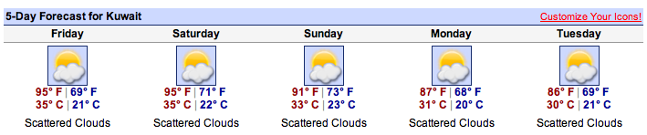The five day forecast shows scattered clouds, lowering temperatures (Wooo HOOOOO!) but . . . where did the chance of rain go?