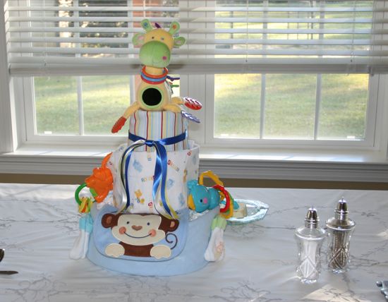 Isn’t it precious? I think it is made out of diapers – it’s called a diaper cake.