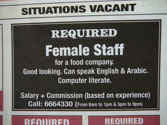 I was about to post about an add that says … Required sales lady .. good looking .. Nice clothes .. hehe 😛