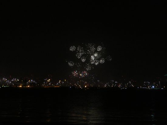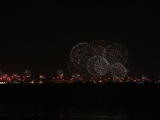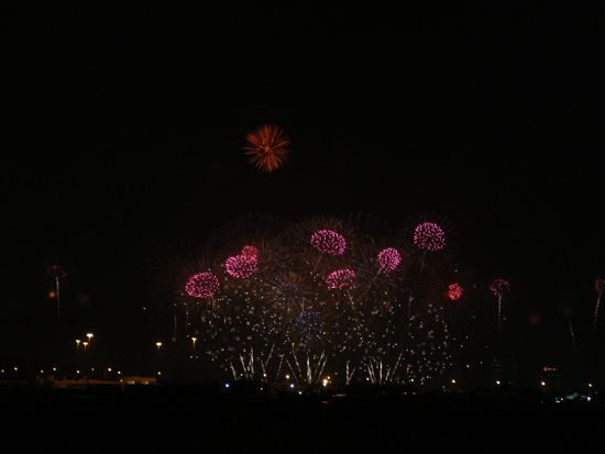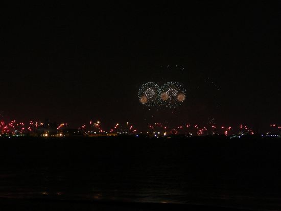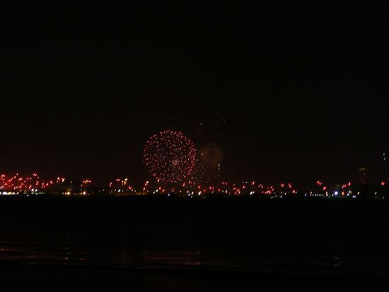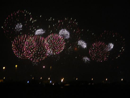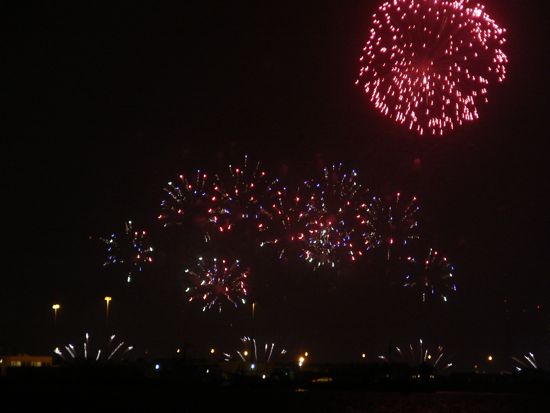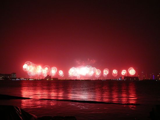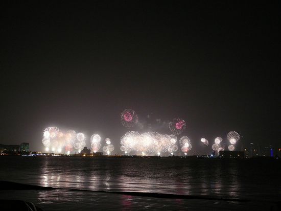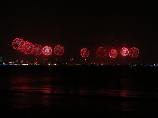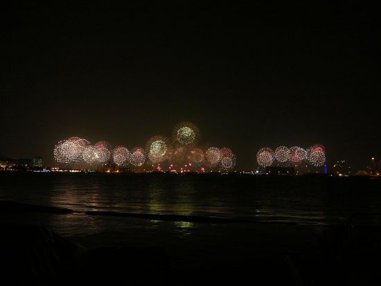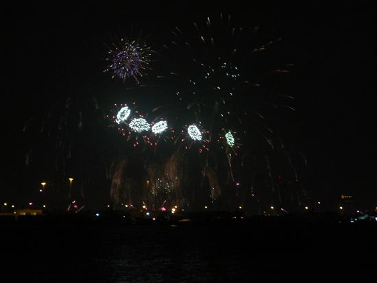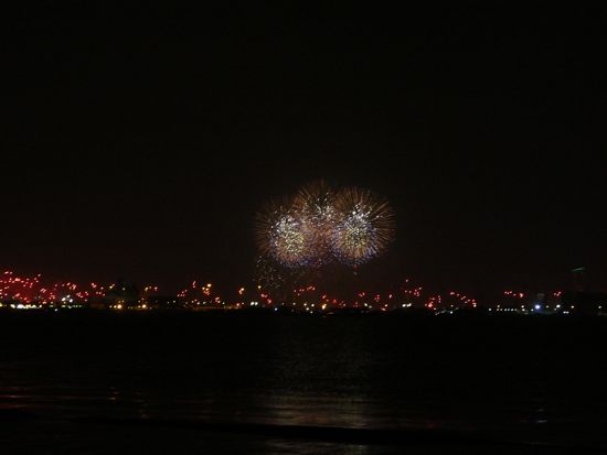 Another amazing thing – the fireworks started ON TIME. Suddenly the entire length of the Corniche erupted in white waterfalls. The fireworks were kept relatively close to the ground, and compact, but spread along a couple miles – it was an amazing feat, and the timing was to the second.