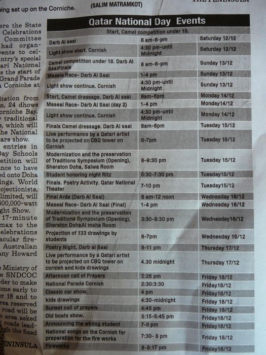 One year, for my birthday, we were having dinner at Le Mer, at the Ritz Carleton, when all of a sudden, the best fireworks display I have ever seen took place on the Corniche. Qatar spares no expense when it comes to fireworks, and this upcoming display sounds like it is not to be missed. 🙂