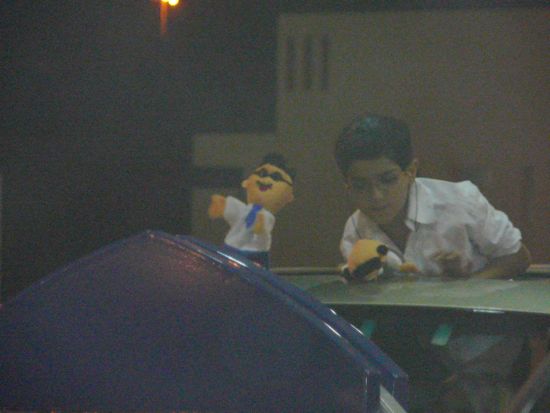 Some of the photos are blurry because it’s night, and the puppets would not stay still – they were swirling and doing battle with one another. Every now and then the boys would come up and take a bow. LLOOOOOLLLLL!