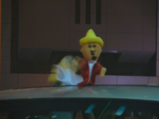 There is nothing more boring than sitting in a gas station, waiting for your tank to fill, unless, of course, there is an SUV with a sun roof, full of adorable, raucous little boys with puppets. We were laughing our heads off.