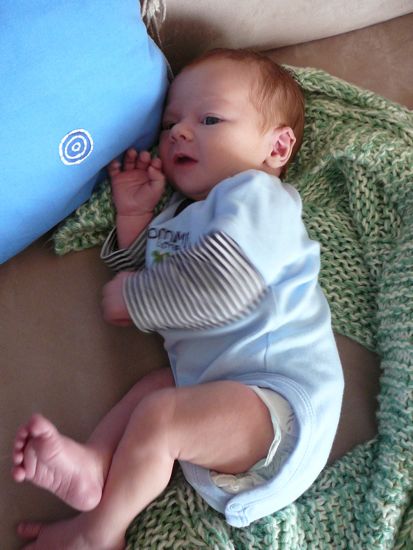 I had forgotten, too, how chaotic life with a newborn can be. His needs take precedence, and sometimes we all run around trying to guess what those needs might be, simple as they are . . . clean diaper? swaddling / soothing to sleep? Mother’s milk? Today was a really good day, where he took the diaper changes with grace, dropped right off to sleep after every meal, and was keenly alert for maybe a half hour after feeding before napping. He loves patterns and fabrics. I am having SO MUCH FUN!