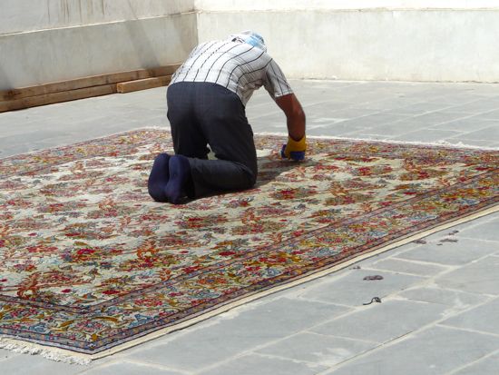There was also, recently, a man cleaning a carpet. I was fascinated. We have carpets. They need cleaning. I have seen carpets cleaned at car washed, and hung on racks to dry. It does not seem to me that people wash these carpets with enormous care, they just wash the carpets.