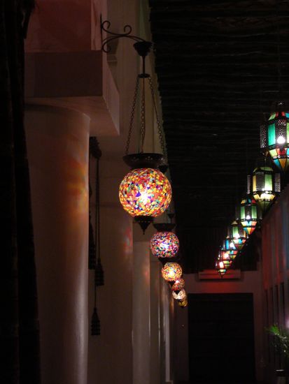 The Tawash is gorgeous. Somebody put a lot of thought into it. You can eat outside, along the walkway, or outside on the balcony, or outside on the upstairs terrace. Or you can eat inside, in a private dining room, or in a large dining room that can be separated by tent-like hangings that drop down between tables. It is beautifully thought through.