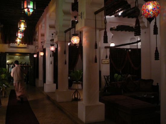 If you have special guests in town for only one night, this would be a great place to take them. It is a beautiful building, it has character and charm, the food is very good, the service is attentive without being intrusive, and it has a kind of magic, a uniqueness that sets it apart from the chains of restaurants also in the souks. If the weather allows you to sit outside – do so. Part of the charm for us was the great parade of humanity passing by as we conversed and ate. It’s an altogether lovely restaurant.
