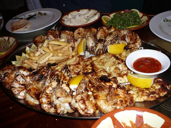 Lucky me, AdventureMan shares my love of this fine restaurant. We meet up with a set of long-time friends and enjoy an evening of hilarity and good food. We had the mezze, yes, including the Majliss’s fabulous muhammara, made with ground walnuts and sweet red peppers and pomegranate juice, and then – the grilled shrimp and hammour. I don’t think anyone does it better: