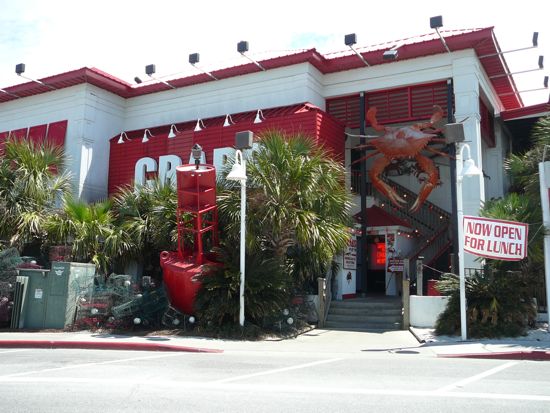And it is gorgeous on Pensacola Beach, temperatures in the low 80’s (F), a nice breeze, some fluffy clouds now and then, and the Crabs looks like just the right place. It is huge. It says it can take ‘large parties’ and it looks like it has seen a large party or two.