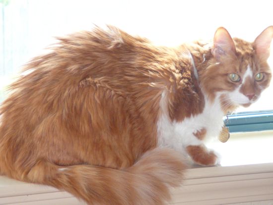This is a tiny little Qatteri street cat, found wandering, cold and hungry, with an eye infection, on the Corniche in Qatar about 7 years ago. We have promised him no more long airplane trips; it was just too traumatic for him. But – that was yesterday. As long as the sun is shining and the Qatteri Cat is warm, hey, life is good. 🙂