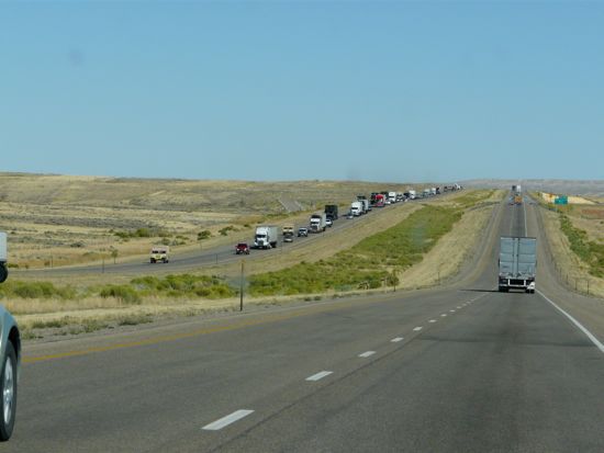 Traffic was light through Wyoming, but heavy coming in the other direction: