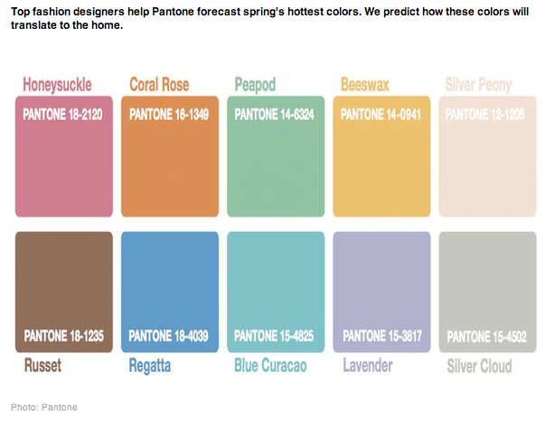 It may only be early winter, but it’s never too soon to start thinking about spring. If you’re among the trendsetters who like to keep things “au courant” in your interior, take a look at the spring fashion color report, courtesy of the expert forecasters at Pantone.
