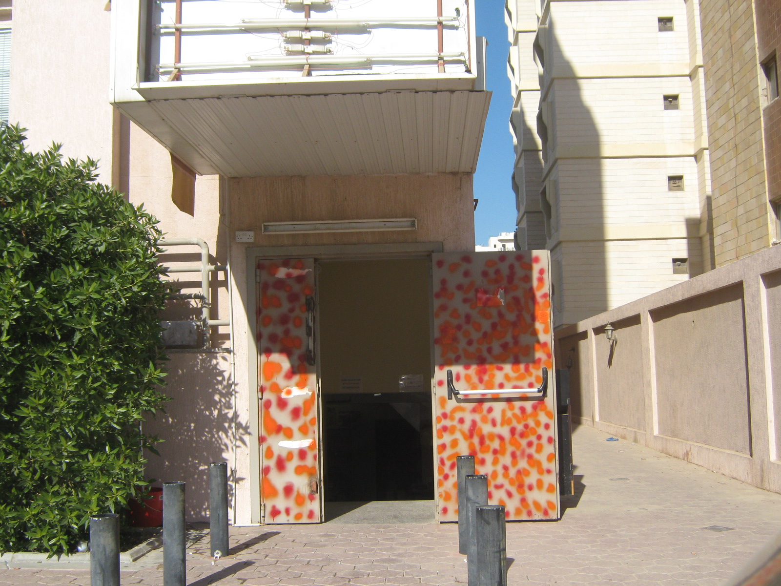 Look for RED/ORANGE door (photo attached)