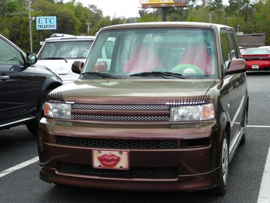 Breaker’s car? This car has eyelashes attached above the headlights!