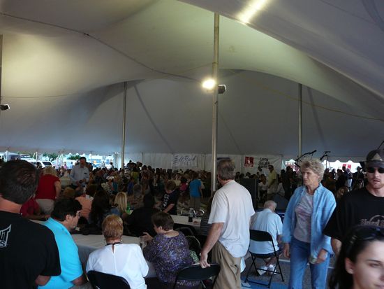 EnviroGirl and I picked up the dinners while AdventureMan and L&O Man scouted for seats in the tent so we could sit and eat dinner – moussaka, chicken, lamb, all kinds of specialities. There was also a very long dessert line – this festival is all about the food, and the music and dancing. I’ve taken some photos for you, but once we had the food, I didn’t get a chance to get any more photos. We only had to stand in line about thirty minutes; although there is a huge crowd, there is also a system, and they get people in and through the serving lines very efficiently.