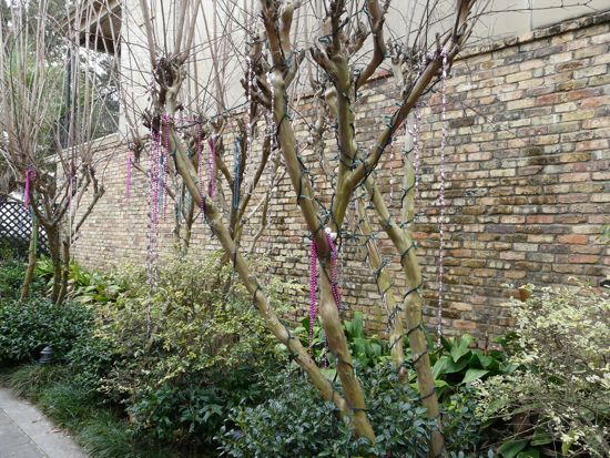 “I’ve never seen anything like this!” shouted my friend, over the bedlam of trumpets and drums in a compelling jungle rhythm. She was dancing and waving her hands madly at the passing Krewe, hoping for a strand or two to come her way. She ended up with a LOT of beads.